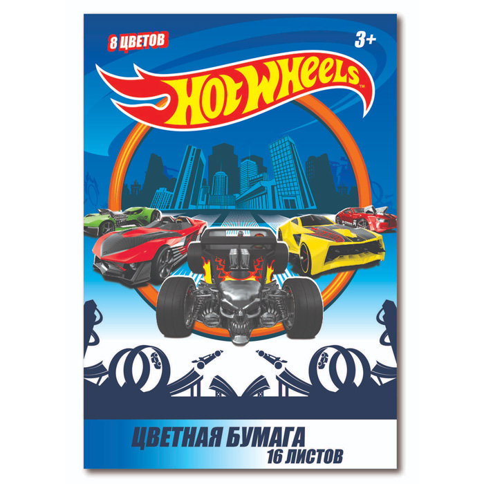 Бумага цветная А4 16л. 8цв. "Hot Wheels" на скобе