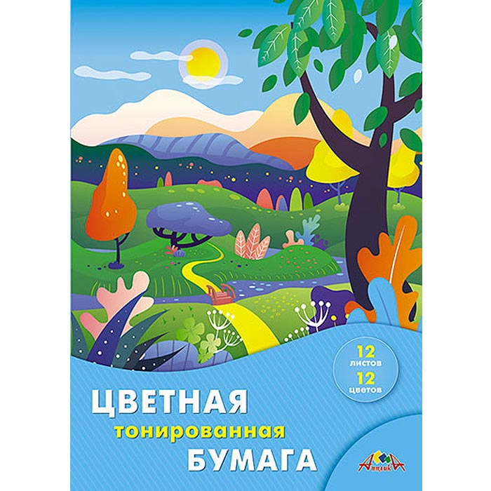 Цветная тонированная бумага, 12 листов, 12 цветов, формат А4, плотность 80 гр/м2. Внутренний блок - тонированная бумага. В наборе цвета: желтый, ярко-оранжевый, светло-розовый, ярко-розовый, розовый, неоновый розовый, сиреневый, голубой, синий, светло-зеленый, зеленый, красный. Упаковка - папка из мелованного картона с одним клапаном. Бумага прокрашена в массе, поэтому при складывании бумаги на сгибе цвет сохраняется. Рекомендуется детям от 3 лет.