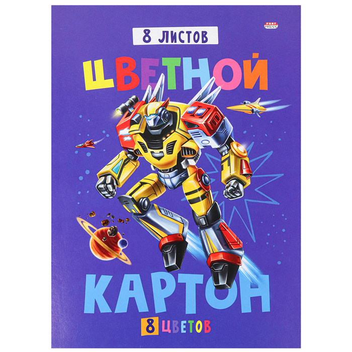 Картон цветной А4 8л. 8цв. "Косморобот" на склейке