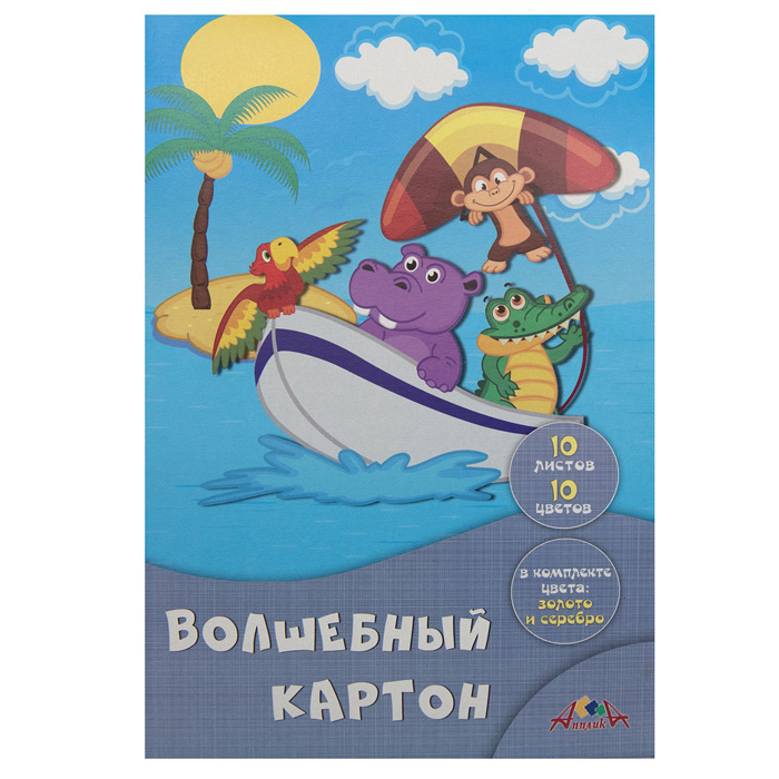Картон цветной волшебный А4 10л. 10цв. "Друзья-путешественники"