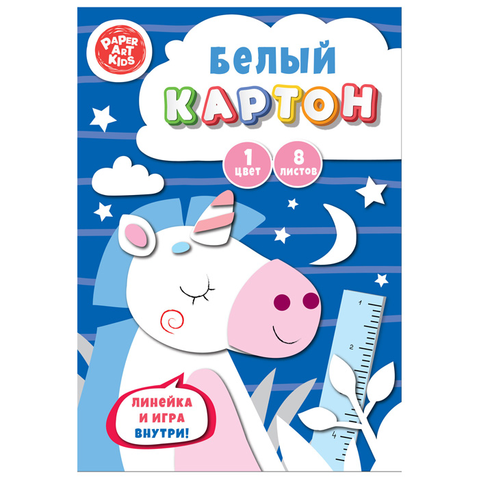 Картон белый 200*280мм 8л Волшебный единорог в папке