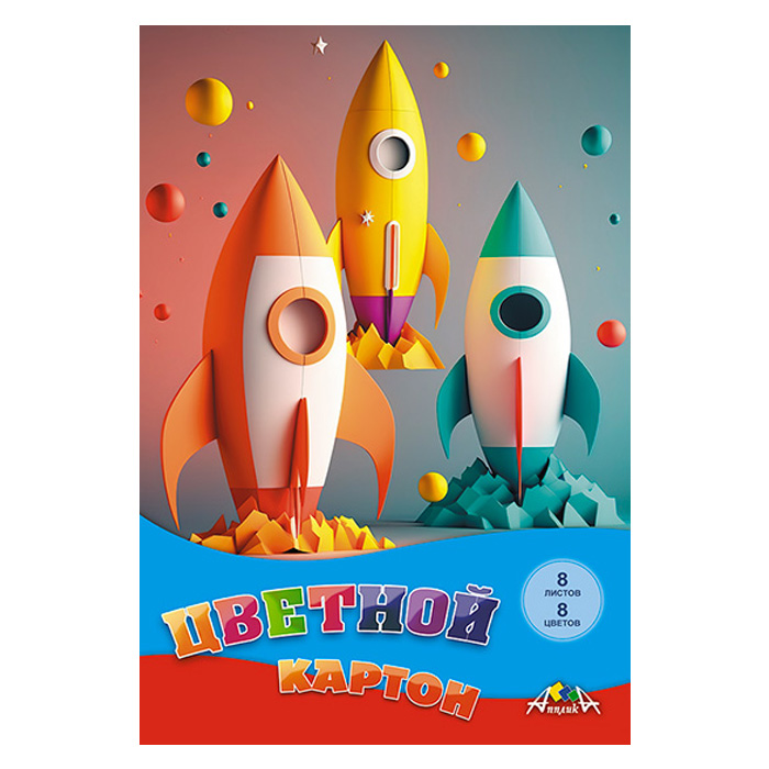 Картон цветной А4 8л. 8цв."Ракеты" в папке