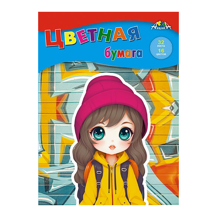 Бумага цветная А4 32л. 16цв. "Аниме"