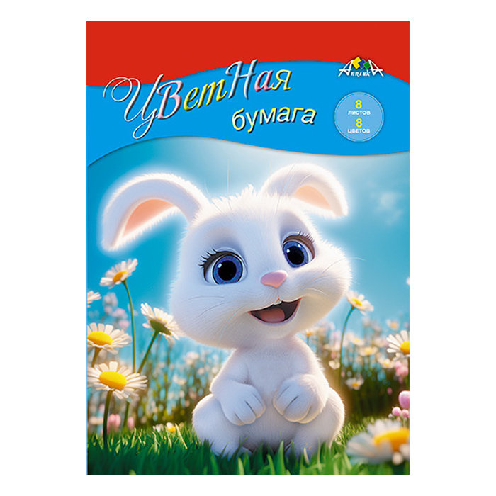 Бумага цветная А4 8л. 8цв. "Зайка"