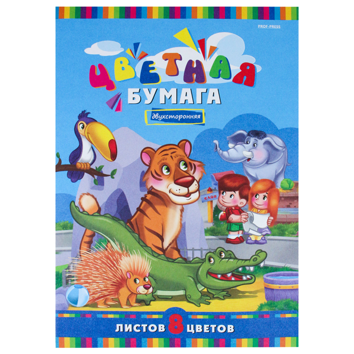 Бумага цветная двухсторонняя А4 8л. 8цв. "Обитатели зоопарка"