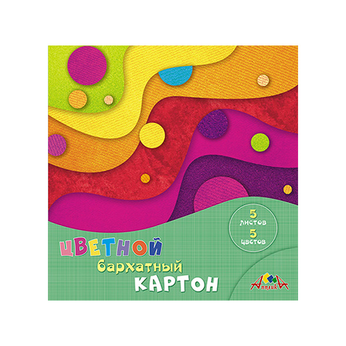 Цветной бархатный картон 5 листов, 5 цветов ТМ Апплика. В наборе представлены цвета: красный, синий, зеленый, желтый, черный. Бархатный картон отлично подойдет для аппликаций, открыток и реализации других творческих идей. Набор упакован в папку из мелованного картона, что позволяет хранить листы в порядке.