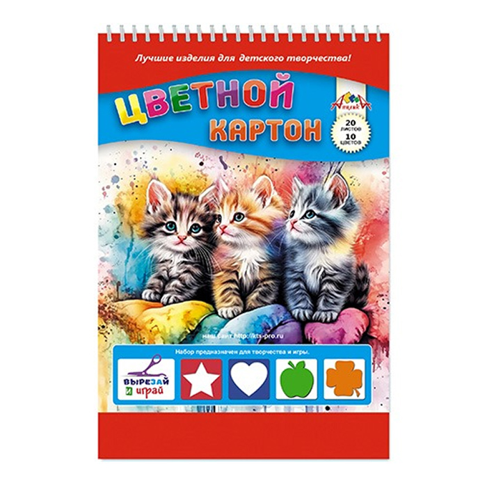 Картон цветной А4 20л.10цв."Три котёнка" на гребне