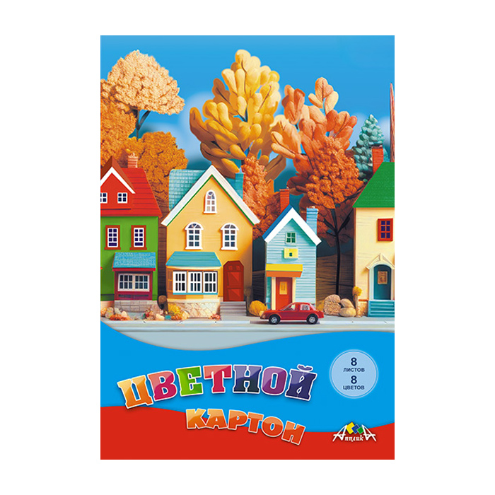 Картон цветной А4 8л. 8цв."Домики" в папке