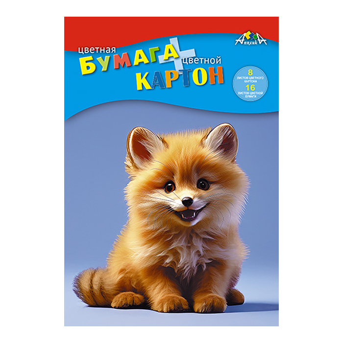 Картон цветной 8л. 8цв. и цветная бумага 16л. 8цв "Лисёнок" в папке