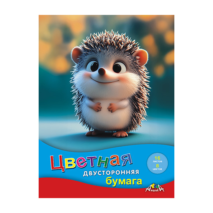 Бумага цветная двухсторонняя А4 16л. 8цв. "Милый ёжик"
