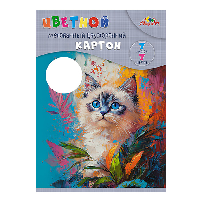 Картон цветной двухсторонний мелованный А4 7л. 7цв. "Голубоглазый котёнок"