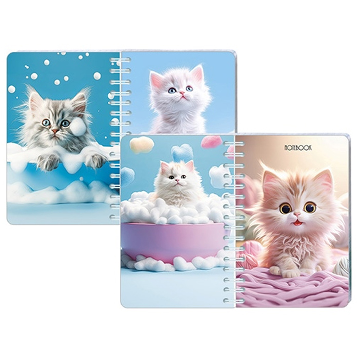 Книжка записная-перевертыш А6 80л "Котята-зефирки" на гребне