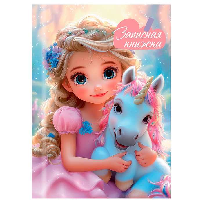 Книжка записная А7 48л "Принцесса и единорог-2" 7БЦ, глянц.лам.