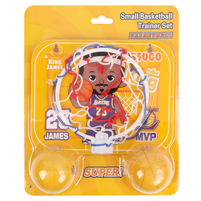 Комплектность : кольцо Ø. 13см с сеткой , мячи Ø 5.5 см . Упаковка - блистер на картонной подложке 22,5*27,5*6см, европодвес.