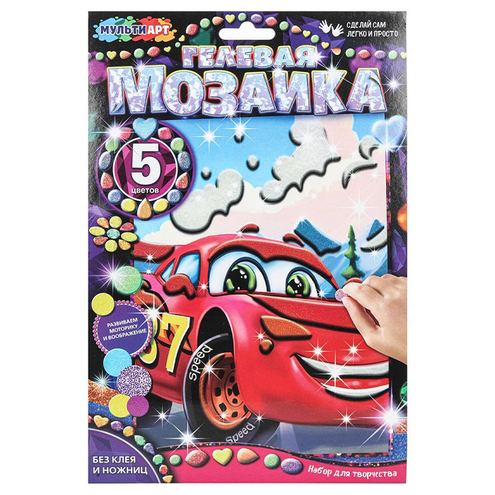 Набор для творчества — гелевая мозаика «Тачки» ТМ «Мульти Арт» — отличный подарок для вашего ребёнка, который будет способствовать развитию его творческих способностей.