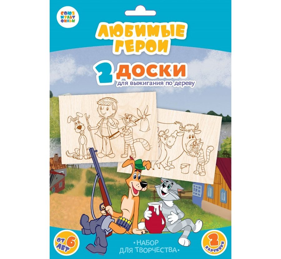 Набор из 2-х досок для выжигания с героями мультфильма «Простоквашино» киностудии «Союзмультфильм».