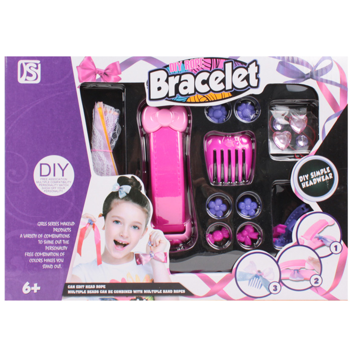 Комплектность : устройство для скрепления бантиков, ленты , аксессуары. Развивает внимание , воображение , мелкую моторику рук. Упаковка - коробка 32*23*5см