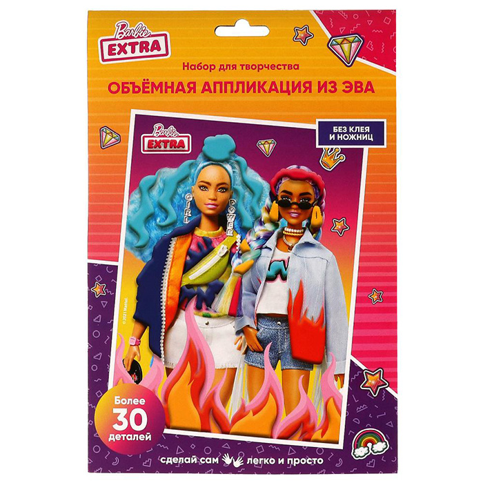 С помощью красочной основы и разноцветных деталей из мягкого материала маленькая художница сможет самостоятельно создать яркую поделку-аппликацию с изображением любимых кукол, которую можно подарить родным, друзьям или использовать для украшения детской комнаты.