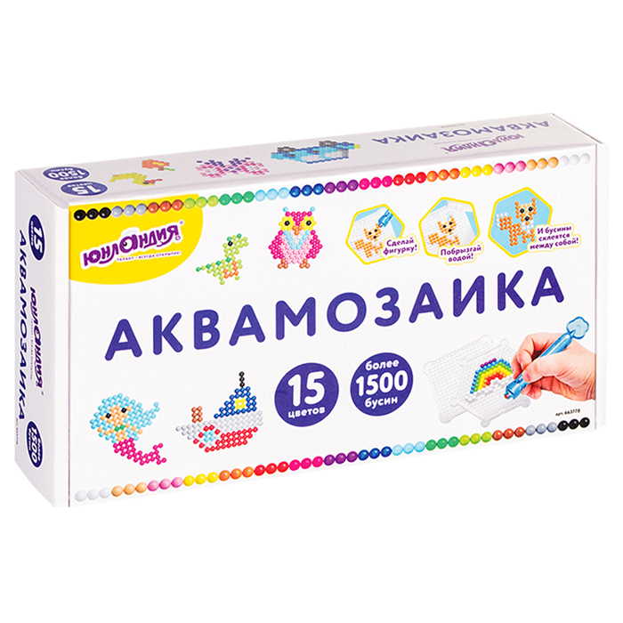 Аквамозаика ЮНЛАНДИЯ - это набор специальных бусин для создания картинок по трафаретам, входящим в набор. Бусины склеиваются между собой, если побрызгать на них обычной водой. Аквамозаика развивает у ребёнка усидчивость, аккуратность, креативное мышление.