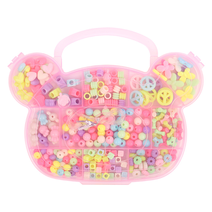Набор для создания украшений в пластиковом контейнере в фоме мишки 11 ячеек. Для детей от 5-ти лет и старше. Развивает внимание , воображение , мелкую моторику рук. Комплектность : бусины , подвески , силиконовый шурок (2м). Упаковка пластик. контейнер в п/э 18,7*15,5*2см.