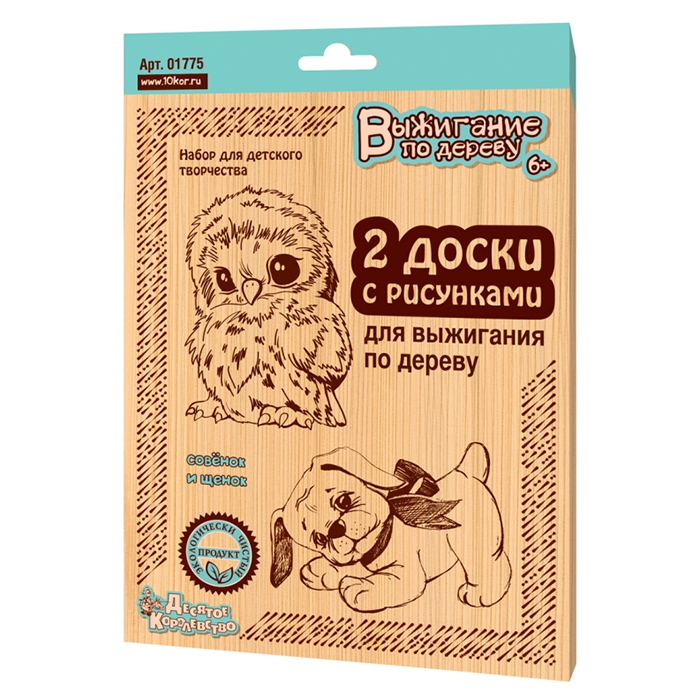 Доски для выжигания с простыми рисунками «Совенок и щенок» понравится всем, кто любит милых забавных животных. Любой из них может стать украшением детской комнаты.