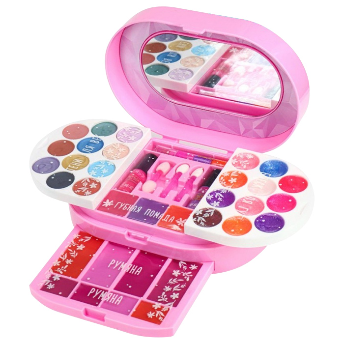 Набор детской косметики "Шкатулка модницы" (тени,румяна,блеск, помада, лак,аппликатор)
