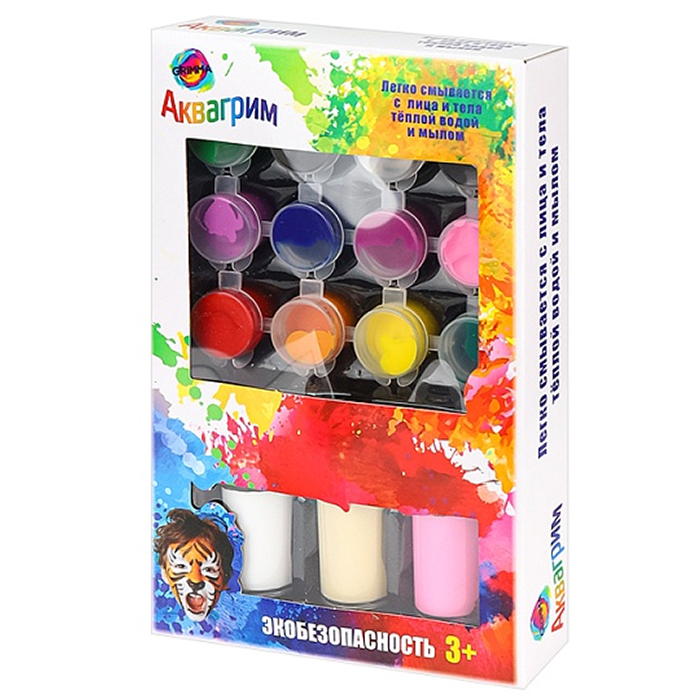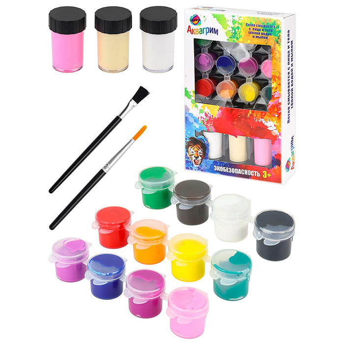 Набор декоративной косметики Аквагрим для лица и тела (13 цв красок , 2 кисти)