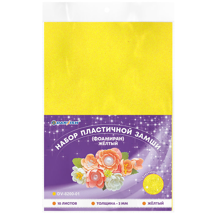 Набор пластичной замши с блёстками жёлтая А4 10л (фоамиран)