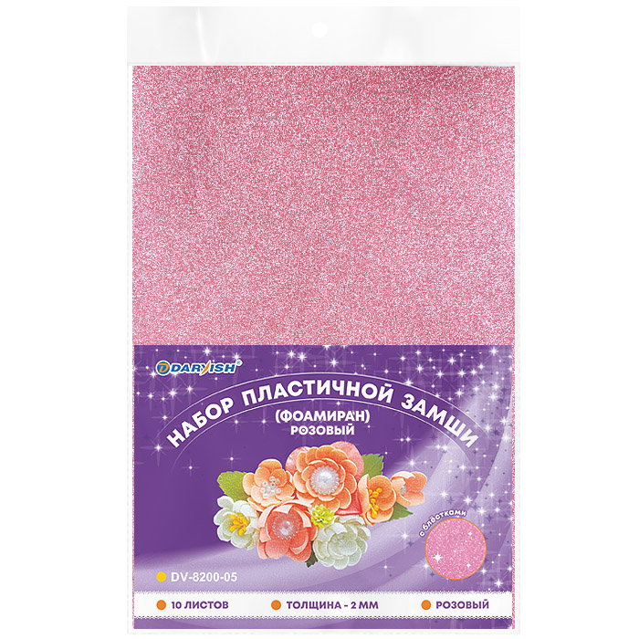Пластичная замша (или фоамиран) - синтетический материал с пористой и бархатистой структурой. Пластичный и лёгкий в работе материал для создания и декорирования цветов, игрушек, открыток, альбомов, фоторамок, подарочной упаковки и реализации любых творческих идей. В набор входят: 10 листов толщиной 2 мм. Размер листов: А4 (210х297 мм). Упаковка: п/э пакет с европодвесом.