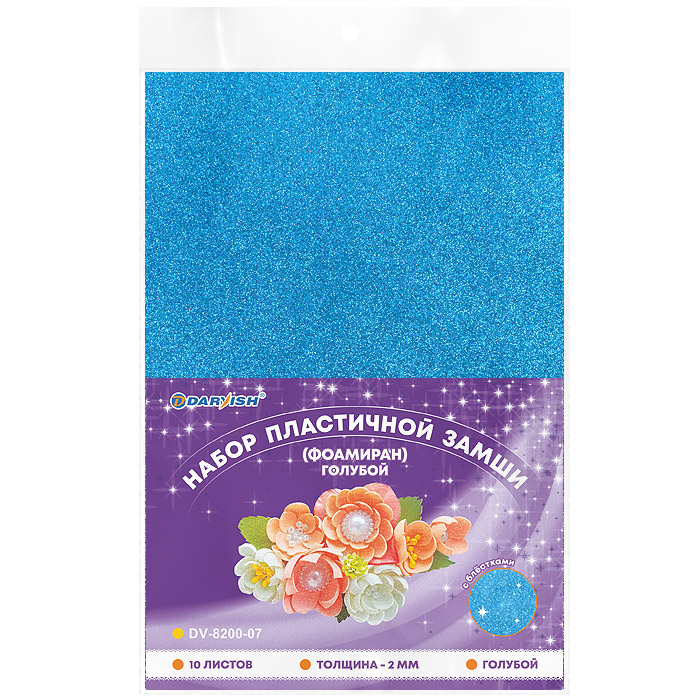 Пластичная замша (или фоамиран) - синтетический материал с пористой и бархатистой структурой. Пластичный и лёгкий в работе материал для создания и декорирования цветов, игрушек, открыток, альбомов, фоторамок, подарочной упаковки и реализации любых творческих идей. В набор входят: 10 листов толщиной 2 мм. Размер листов: А4 (210х297 мм). Упаковка: п/э пакет с европодвесом.