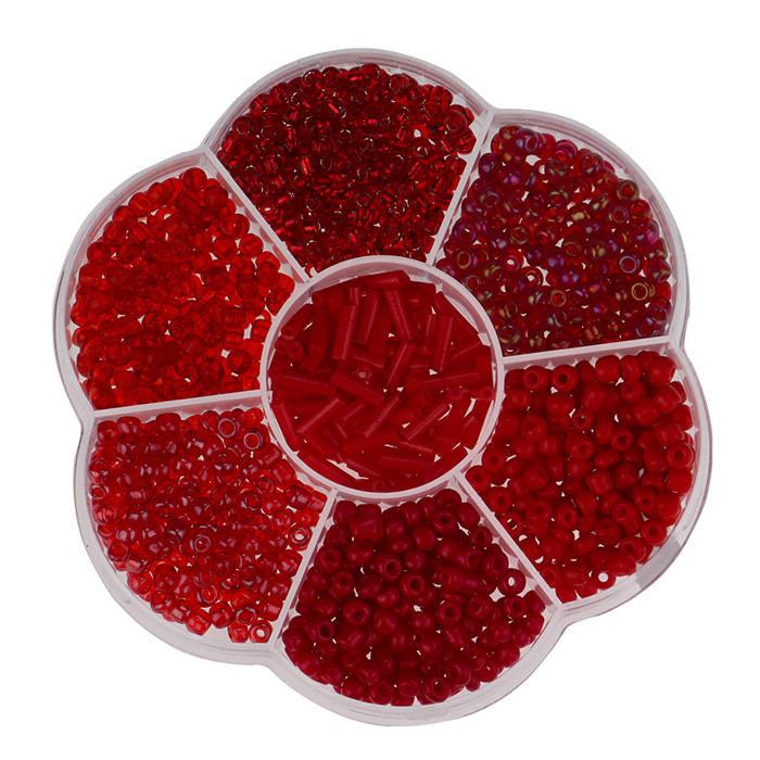 Набор для бисероплетения в боксе 7 видов бисера цвет красный
