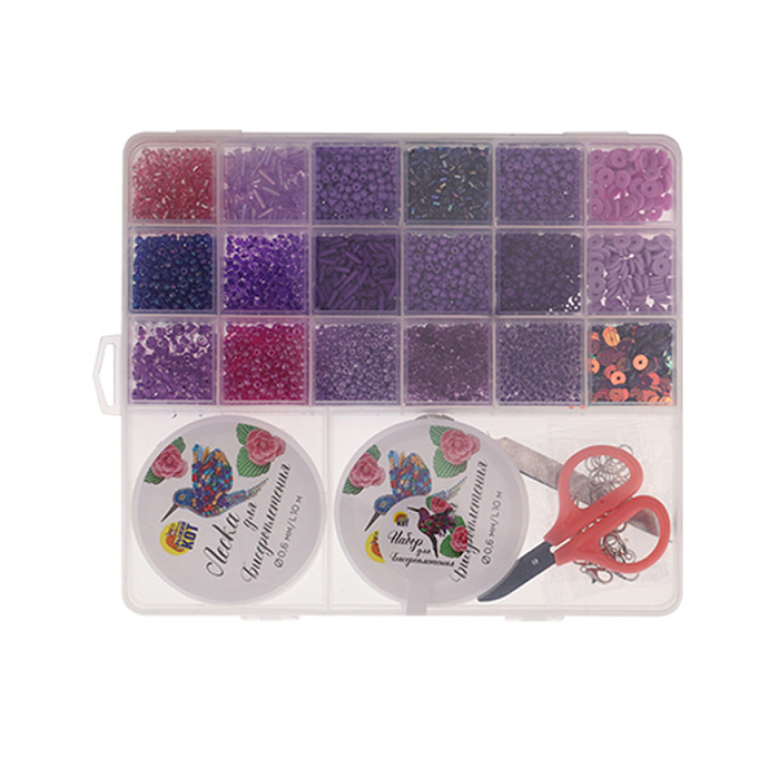 Набор для бисероплетения в боксе 18 видов бисера цвет фиолетовый