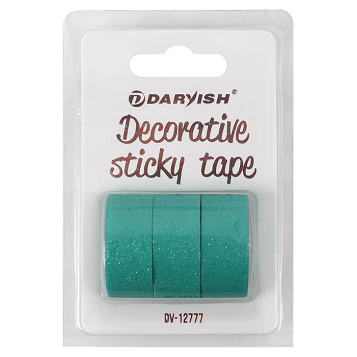 Лента декоративная липкая 3шт/уп 15мм*3м "Darvish" блёстки бирюзовая