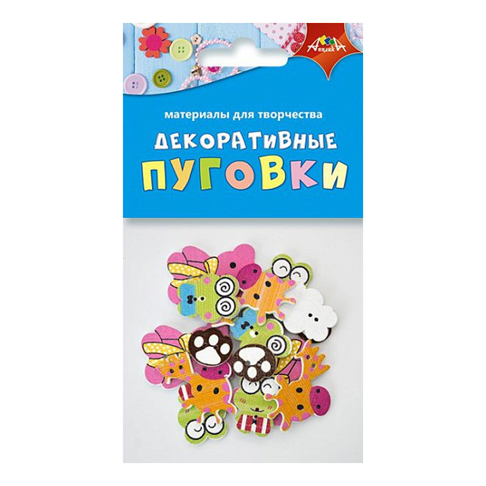 Набор для творчества. Пуговицы деревянные декоративные. В наборе декоративные пуговицы различных форм и расцветок. Упаковка - ПЭТ пакет с картонным европодвесом.