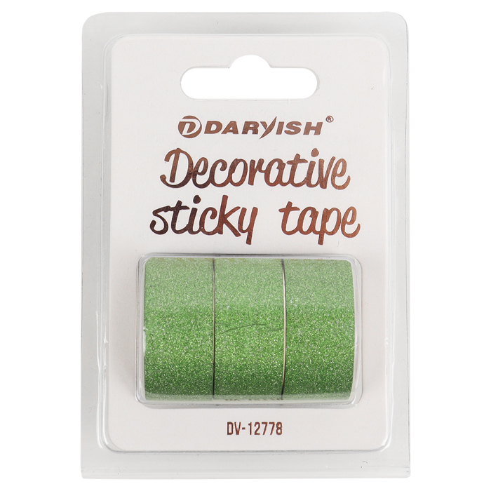 Лента декоративная липкая 3шт/уп 15мм*3м "Darvish" блёстки салатовая