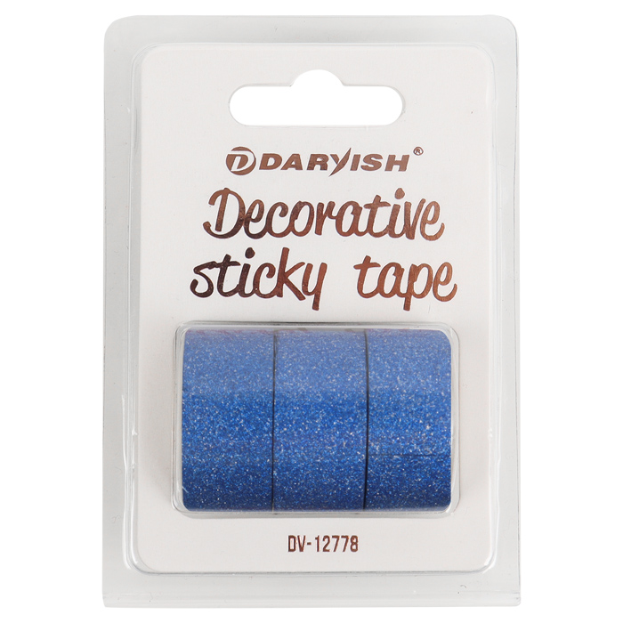 Лента декоративная липкая 3шт/уп 15мм*3м "Darvish" блёстки синяя
