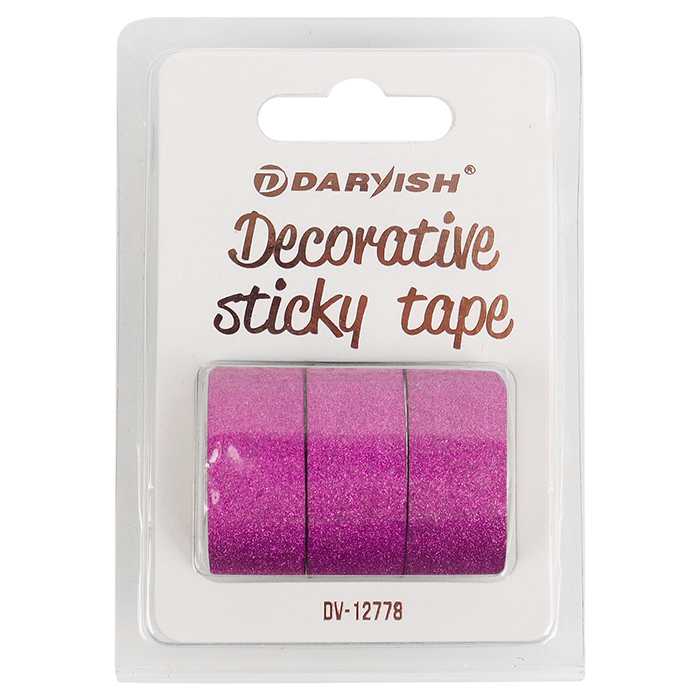 Лента декоративная липкая 3шт/уп 15мм*3м "Darvish" блёстки фуксия