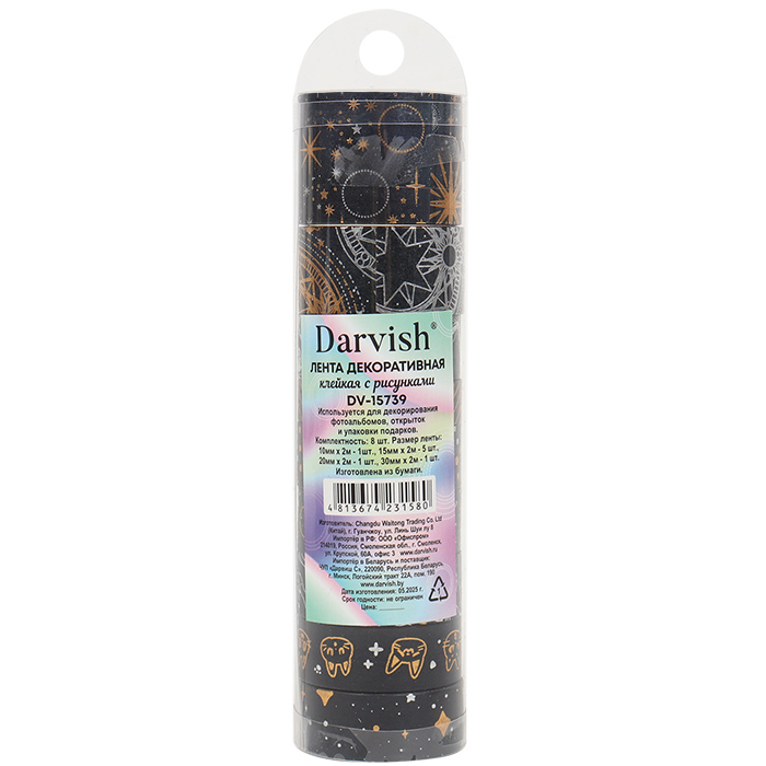Лента декоративная клейкая с рисунками 9шт в наборе