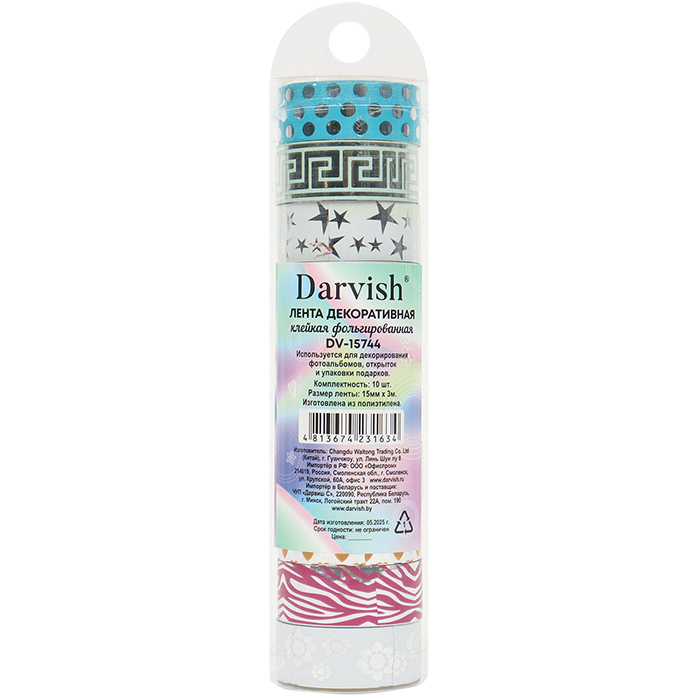 Используется для декорирования. Размер : 15мм*3м. Цена за набор из 10шт. Упаковка: Пластиковая туба с европодвесом 4*15,1*4см