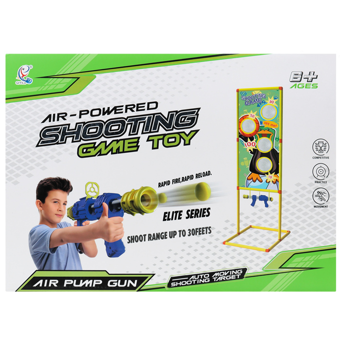 Комплектность : помповое ружьё , 12 шариков , стойка -мишень. Возраст: 6+. Упаковка коробка 41*29,5*7,5см.