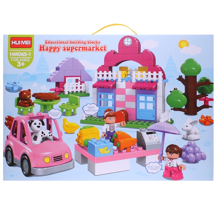 В конструктор входит все необходимое для постройки супермаркета, организации торговли и зоны отдыха.