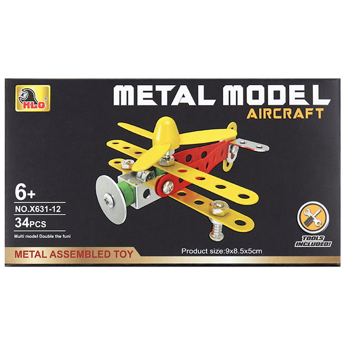 AIRCRAFT. Металлические детали + отвертка (34детал). Возраст 6+. Работа с конструктором активно развивает мелкую моторику рук, а также стимулируют воображение и креативность. Дети могут создавать свои собственные модели, экспериментировать с формами и конструкциями, что развивает их творческое мышление. Упаковка 11*6*4,5см