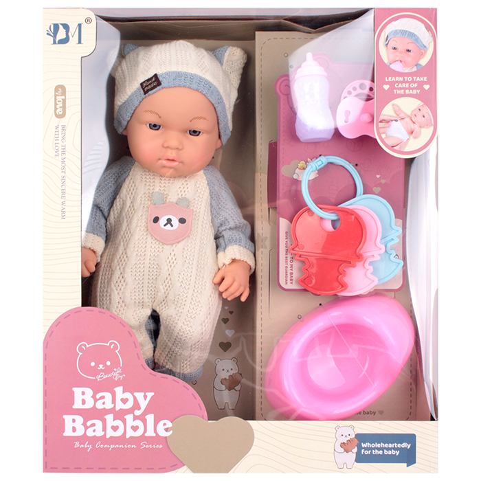 Комплектность : пупс 15*9*31см, горшок, бутыточка, пустышка и погремушка. Возраст : 3+.Упаковка - коробка 29*34*10см