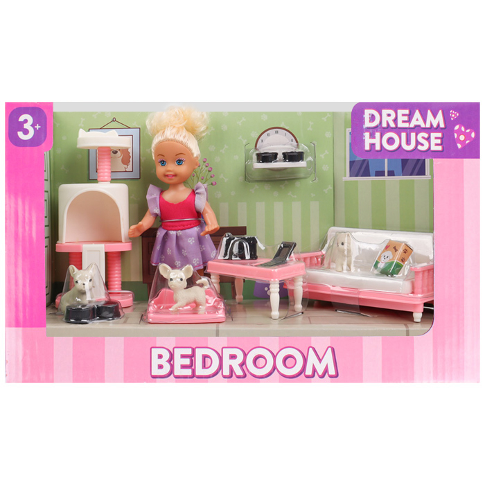 Куколка в наборе "PETROOM". Комплектность : кукла , домашние животные , мебель и аксессуары для домашних животных. Возраст 3+. Упаковка коробка 28,5*17*11см.