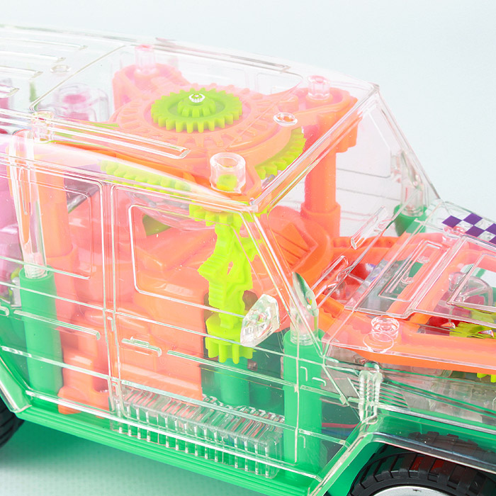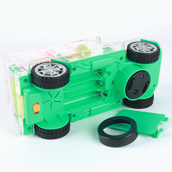 Для детей от 3-х лет и старше. Для игровых целей. Ассорти цвет. Эффекты: свет , звук. Использовать 3 батареи 1.5V типа АА (в комплект не входят.) Размер игрушки: 20,5*8*9,5 см. При движении игрушка светится разноцветными огоньками и издает веселые мелодии, а прозрачный корпус позволяет наблюдать за вращающимися шестеренками. Упаковка - коробка 21*10*9,5см