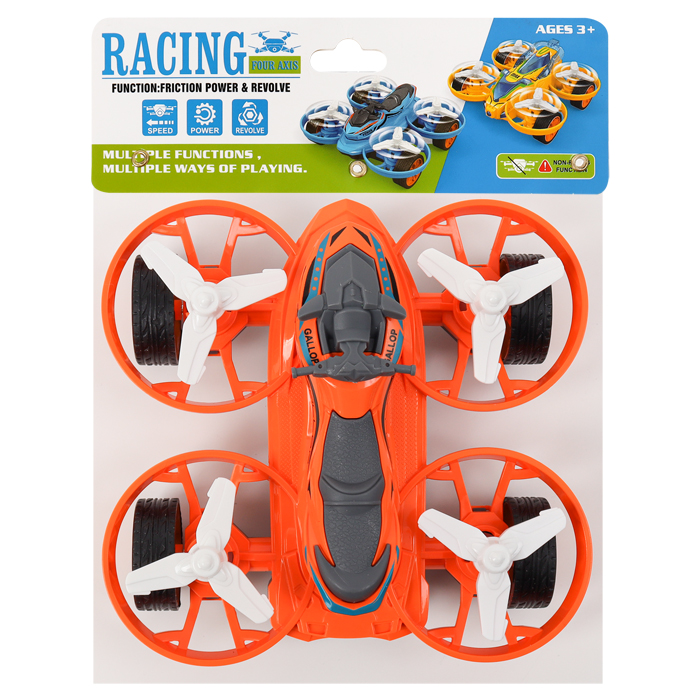 Машинка-квадрокоптер (13*12,53,5см) с 4 лопастями , при движении крутятся. Ассорти. Упаковка пакет ПВХ 17,5*18*3см.