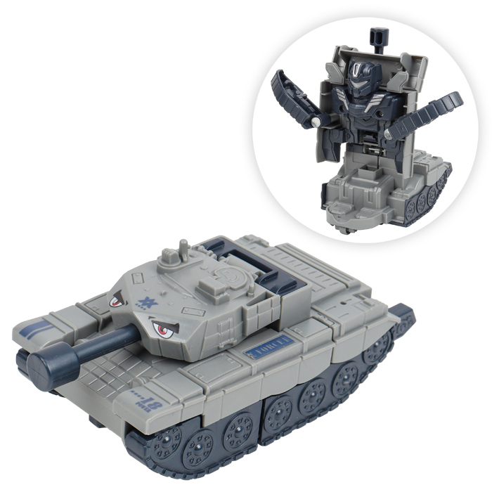 Танк-трансформер инерционный 13,5*6,5*4,5см. Ассорти цвет. Инерционный механизм позволяет ему двигаться вперед без дополнительного источника питания. Шоубокс 9шт 39*33*7см.