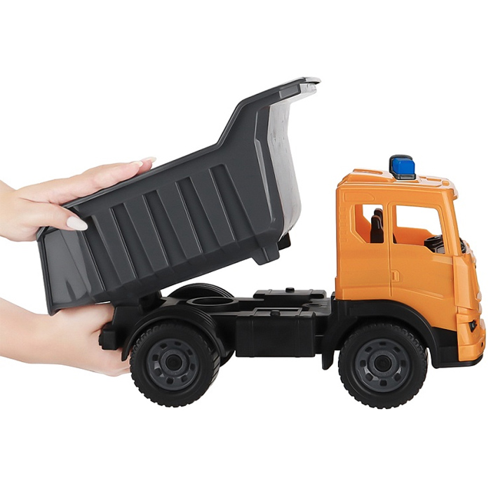 Машинка Самосвал "Мирослав" Строительный спецтехника с мигалками придется по душе любому мальчишке! Он изготовлен из высококачественного пластика, подходит для игры в помещении или на открытом воздухе. Такая игрушка способствует развитию координации и мелкой моторики. Размер: 41 см.