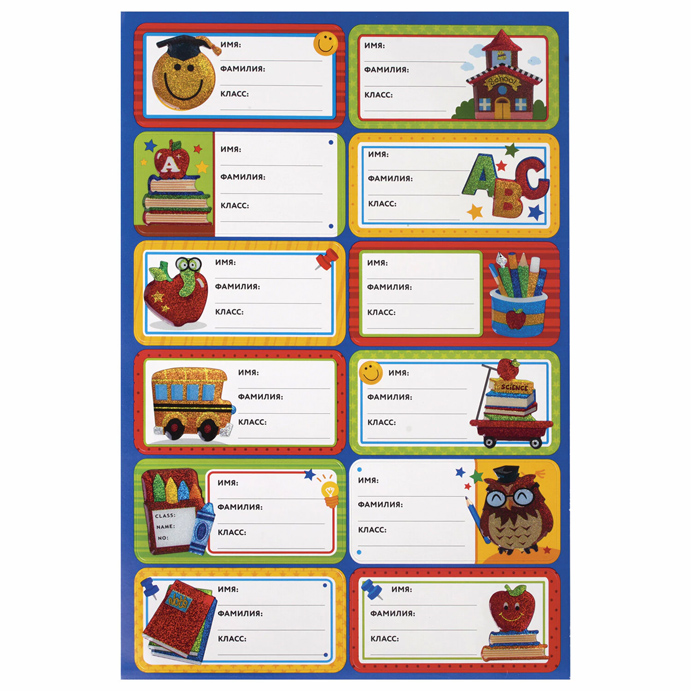 Наклейки бумажные для маркировки школьных принадлежностей "Школа", 12 штук, ассорти, 14х21 см
