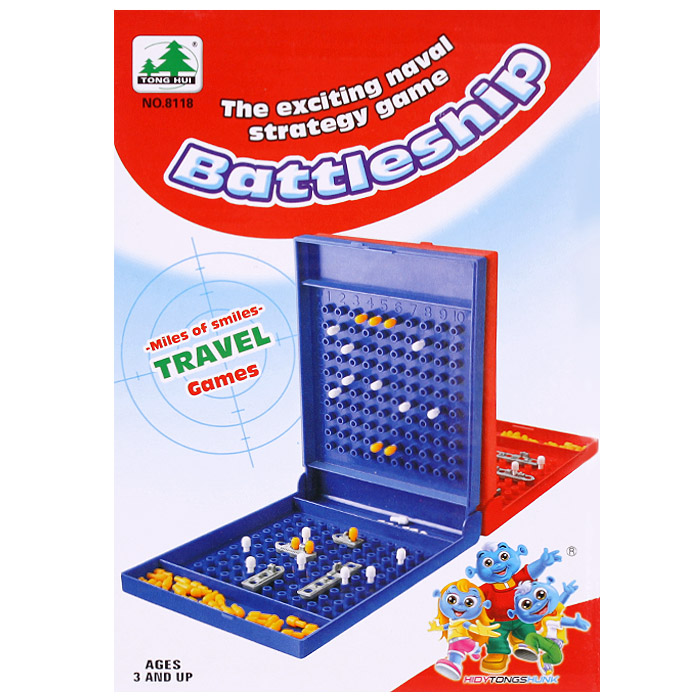 Настольная игра "Морской бой". Комплектность: 2 игровых поля синего и красного цвета, размер в закрытом состоянии 9,5*13, 5*1,7 см. + фишки в виде корабликов и бомбочек. Возраст 3+. Упаковка - картонная коробка 14*20*4 см.